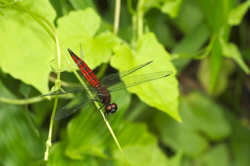 The carmine skimmer is found at temporary and permanent ponds, lakes, ditches, and slow streams.