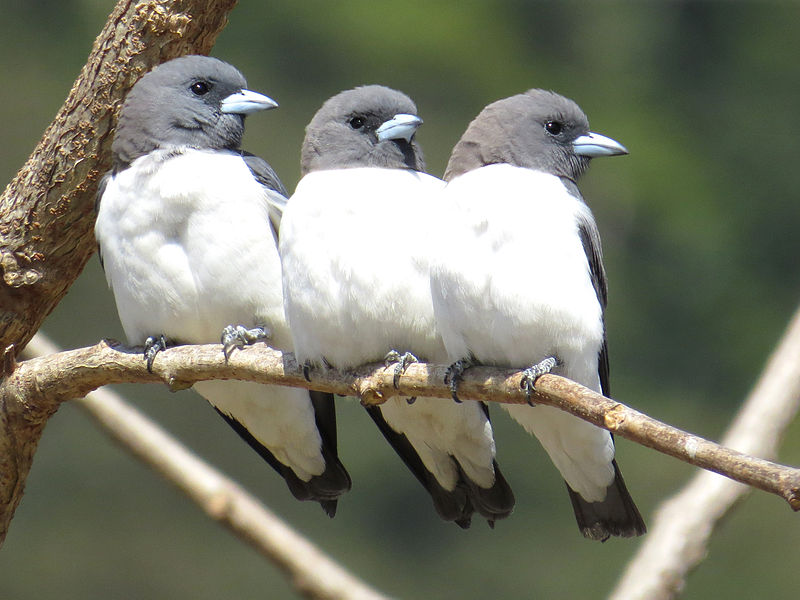 The great woodswallow has black uppersides and a white chest and belly. It is found in Indonesia and Papua New Guinea.