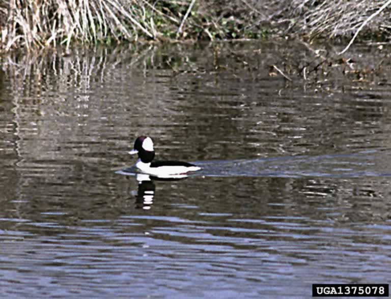 BuffleheadThe bufflehead is awkward on land because its feet are set back on its body, but it is a good swimmer and a fast flier! The bufflehead runs on the water to work up enough speed to launch itself into flight. When in flight, it flies close to the water.