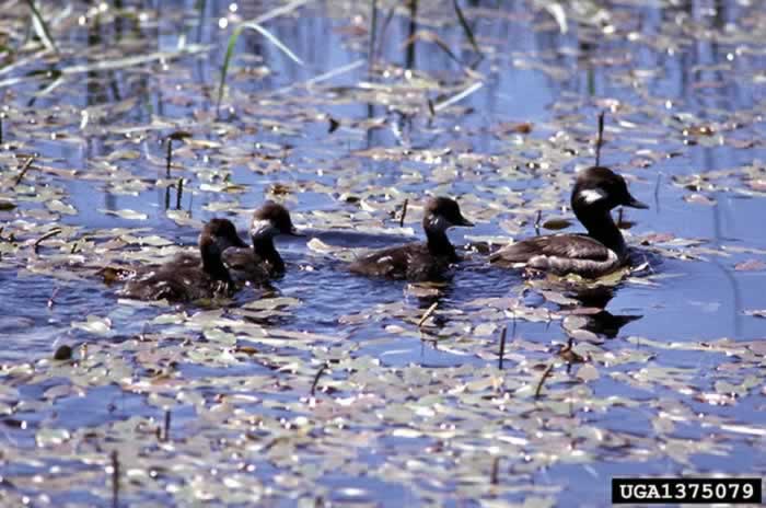The bufflehead often uses the abandoned nests of northern flickers. During breeding season, it is found in freshwater ponds and small lakes with poplar or aspen stands or coniferous forests with poplar or aspen trees inhabited by northern flickers. In the winter, it is found in shallow saltwater bays and estuaries, in lakes, and in rivers.