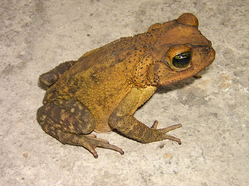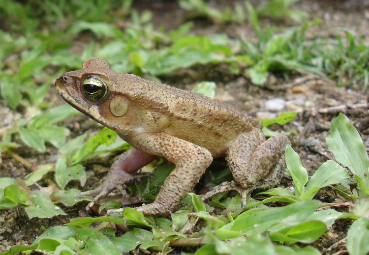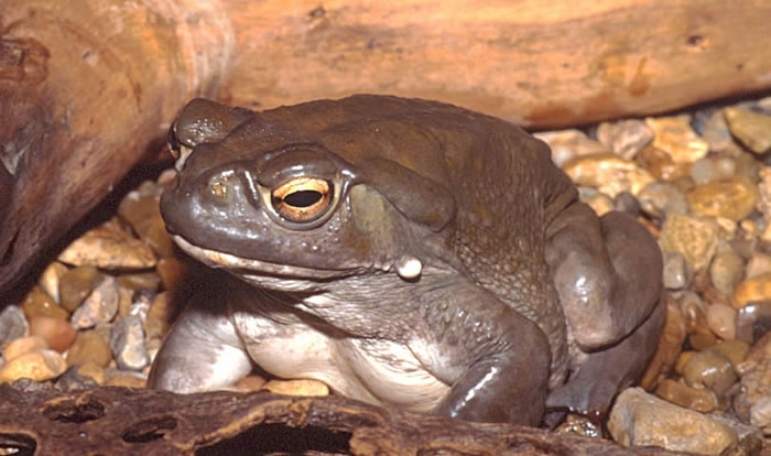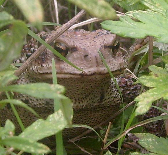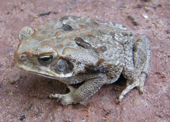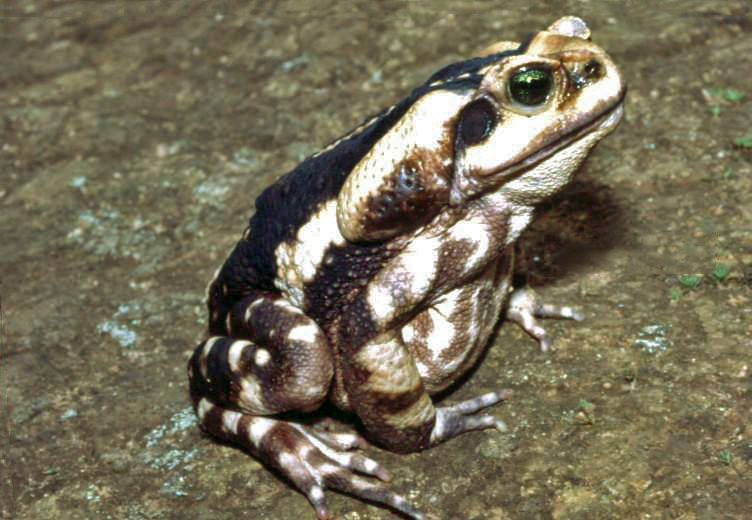 The Cururu toad has glands the excrete poison on the sides of its head and on the back of its legs.