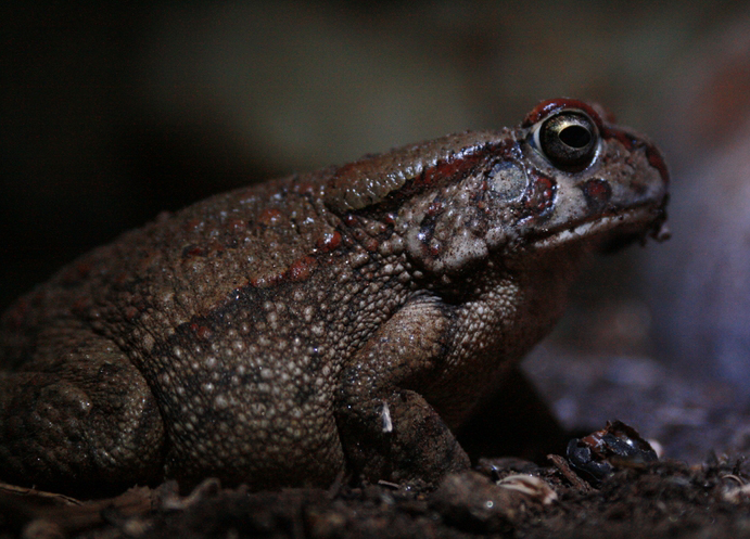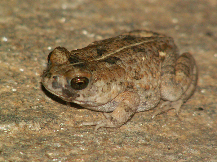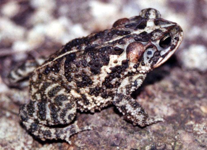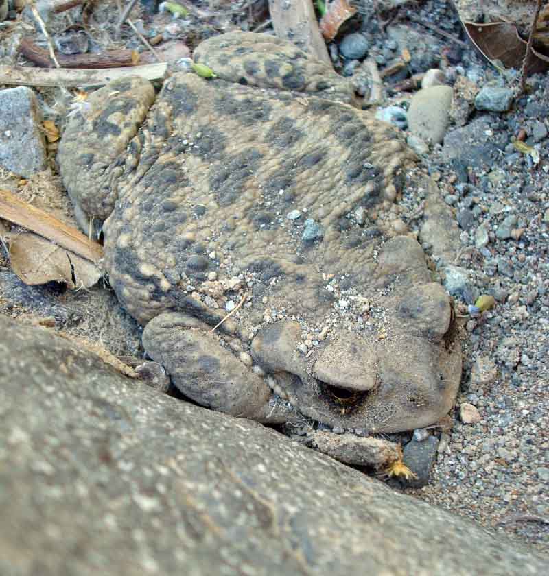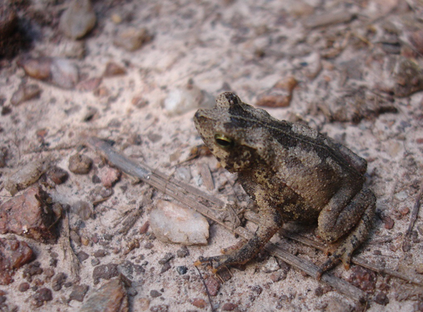 The Arizona toad is largely nocturnal. It spends the day burrowed in the ground.