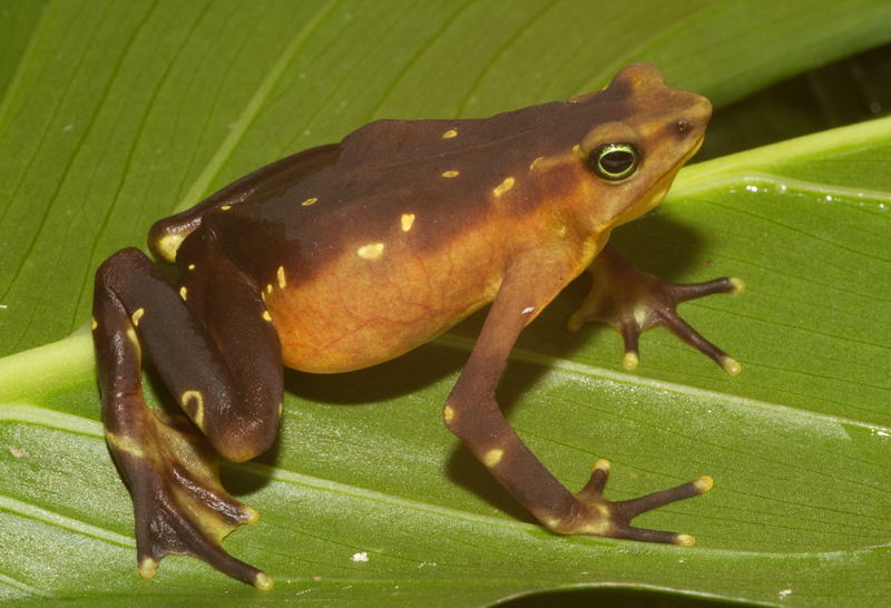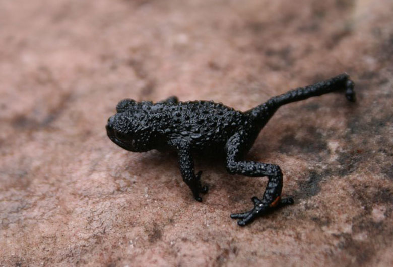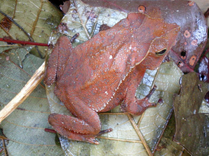 This tiny toad, no bigger than a man's thumbnail, is found in Brunei and Malaysia.