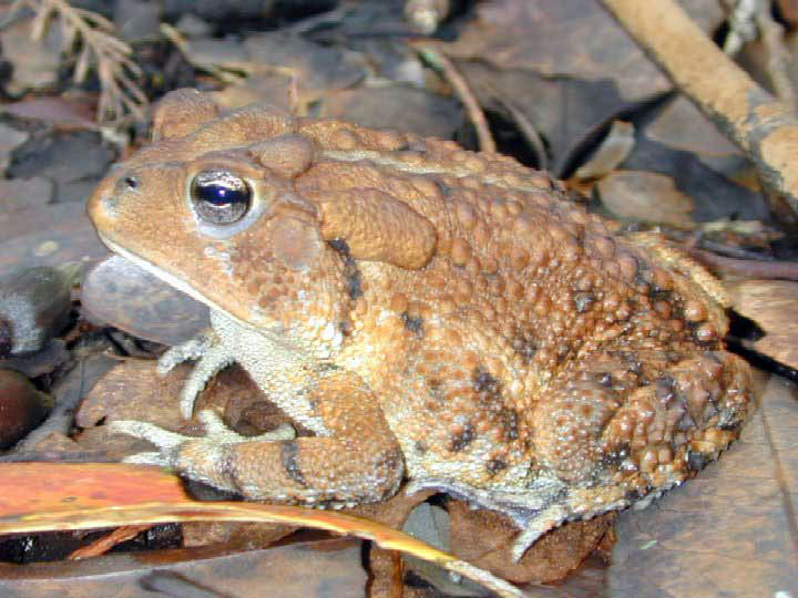 The southern toad is found in sandy areas, marshes, and mixed hardwood swamps.