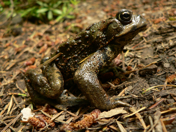 In the spring and the summer, the western toad is usually found at the water's edge or basking on partially submerged logs.