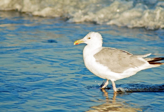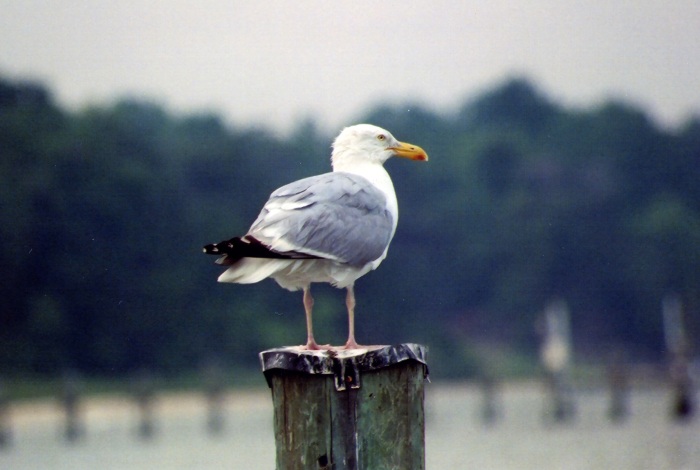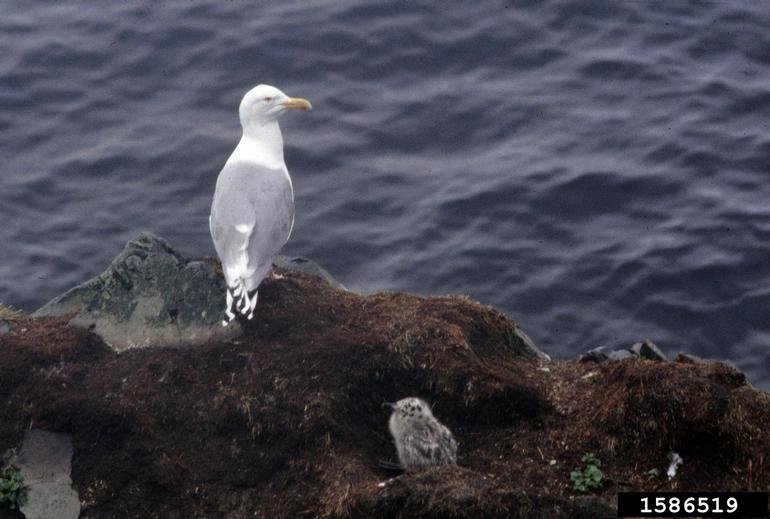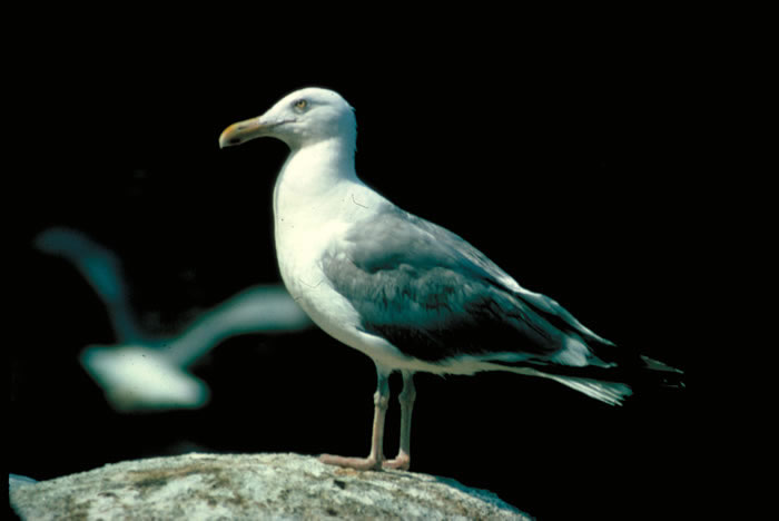 The American herring gull is one species of bird that has adapted very well to human activity. It scavenges for food around dumpsters, garbage dumps, restaurant parking lots, and fishing harbors.