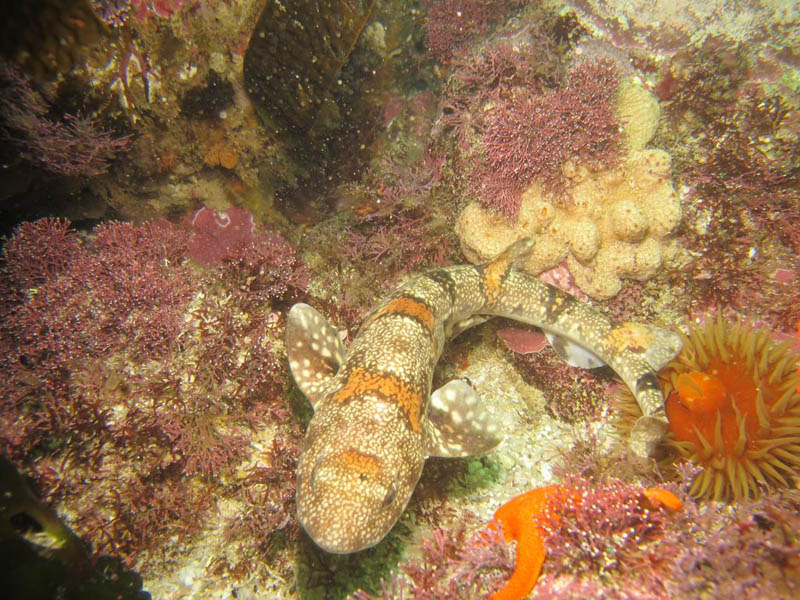 The puffadder shyshark is found in waters off of South Africa. It is also known as the happy Eddie.