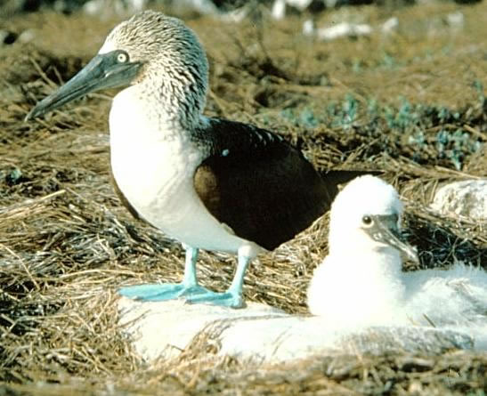 The blue-footed booby is found along the Pacific coast from California to Chile.